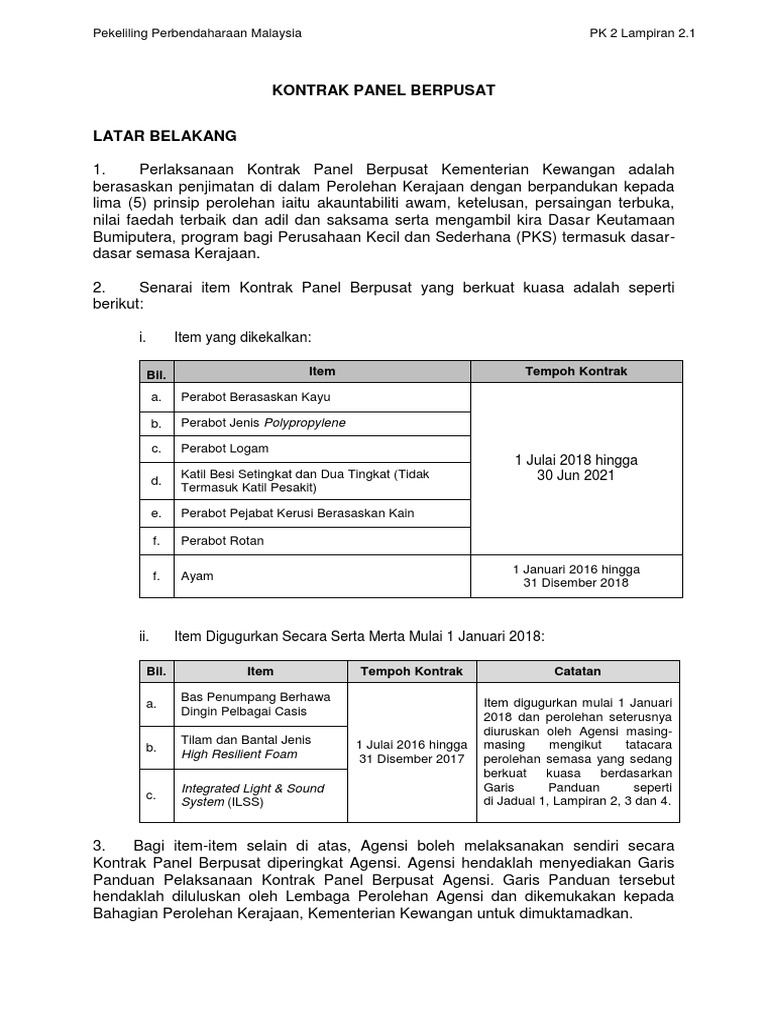 Kementerian Kewangan Malaysia Pekeliling Kontrak Perbendaharaan Bil 2 Tahun 2014 Pelanjutan Tempoh Kontrak Pusat Sistem Panel Pdf Free Download